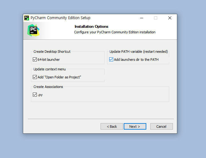 Create Desktop Shortcut: 바탕화면에 PyCharm 바로 가기 생성