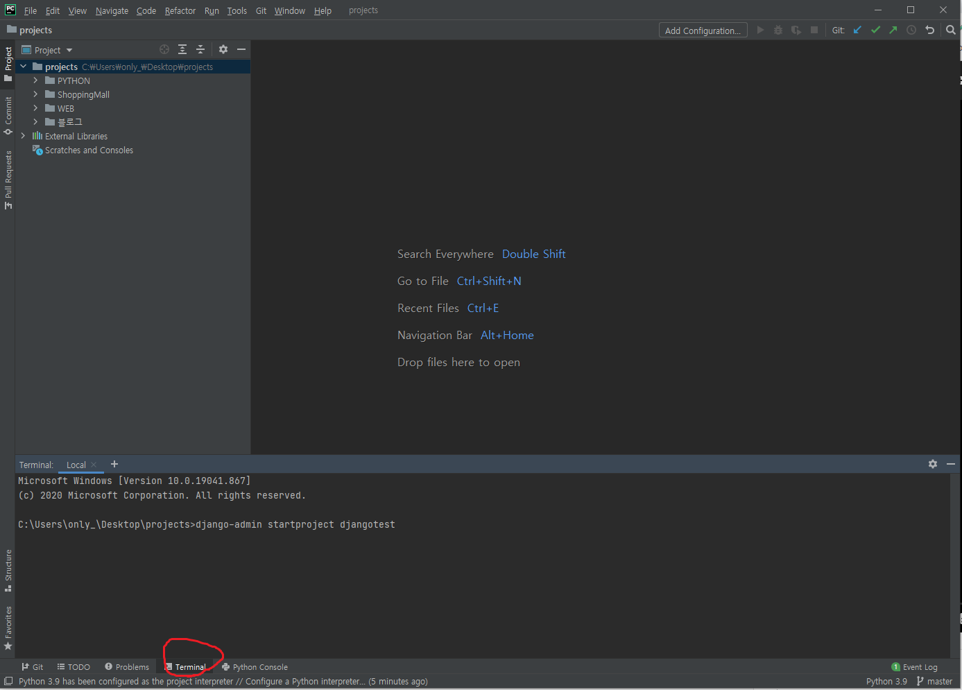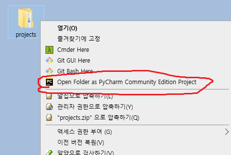 이와 같이 원하는 폴더에서 PyCharm을 실행할 수 있다.