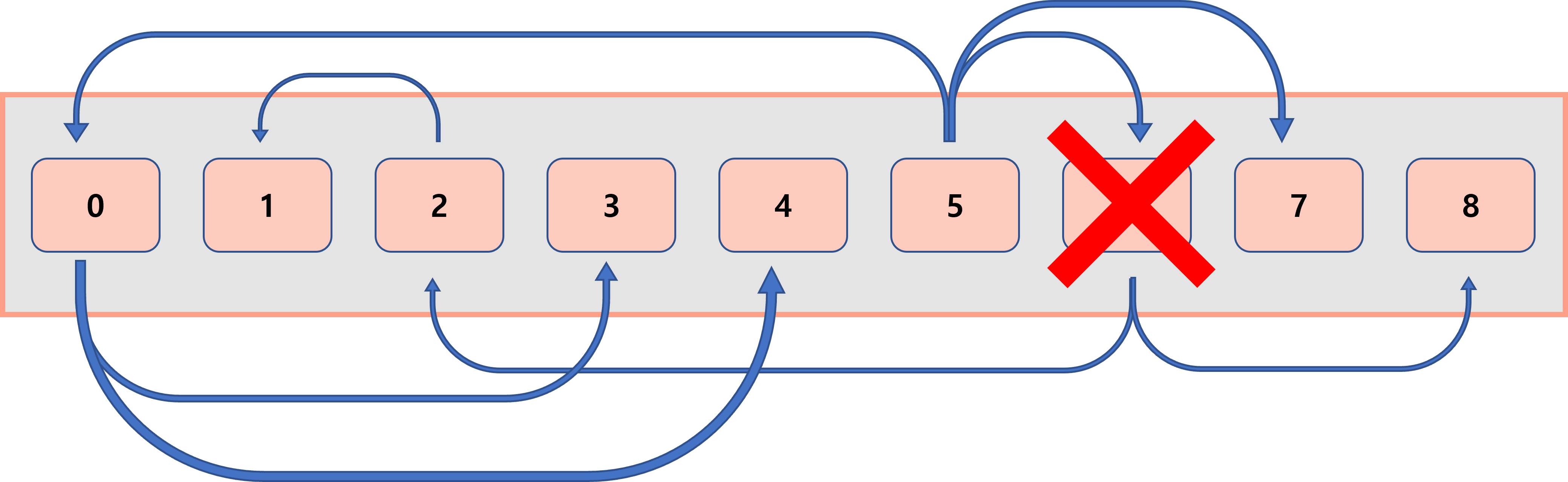 예시 입력: 5 2 6 0 0 -1 5 5 6
