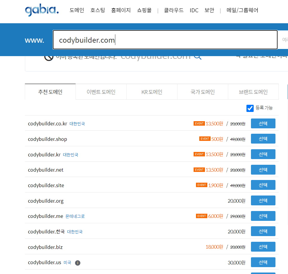 티스토리 도메인은 codybuilder.tistory.com/이 기본 형식이지만 개인 도메인을 설정할 수 있다.
