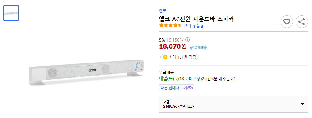 고르고 고른 제품은 앱코 S500AC 사운드바(화이트)